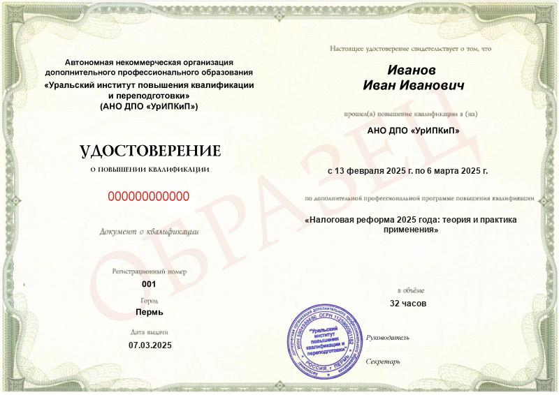 Налоговая реформа 2025 года: теория и практика применения (32ч)