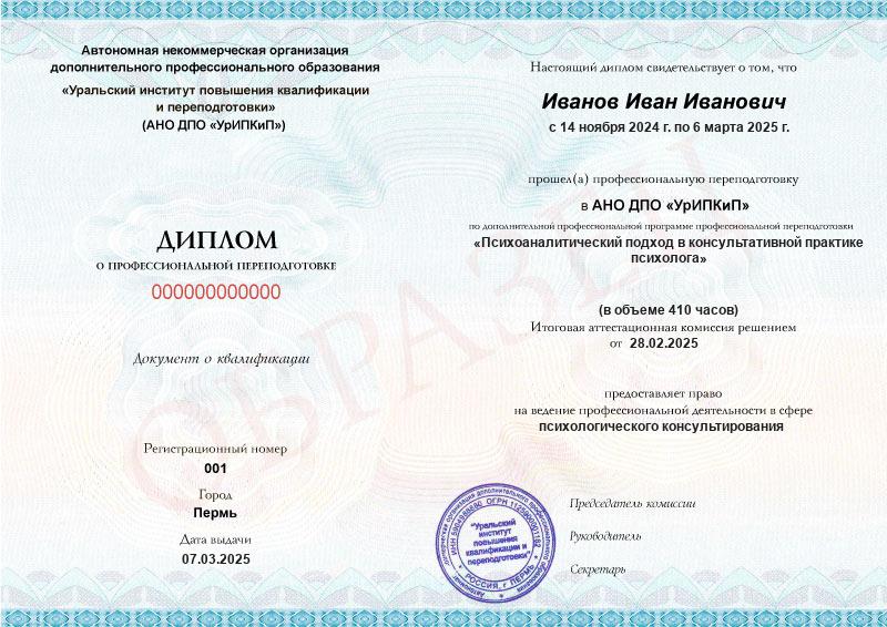 Да, дипломы и удостоверения оформляются в соответствии с действующим законодательством РФ. Документы печатаются на специальных бланках, заверяются печатью АНО ДПО «УрИПКиП».